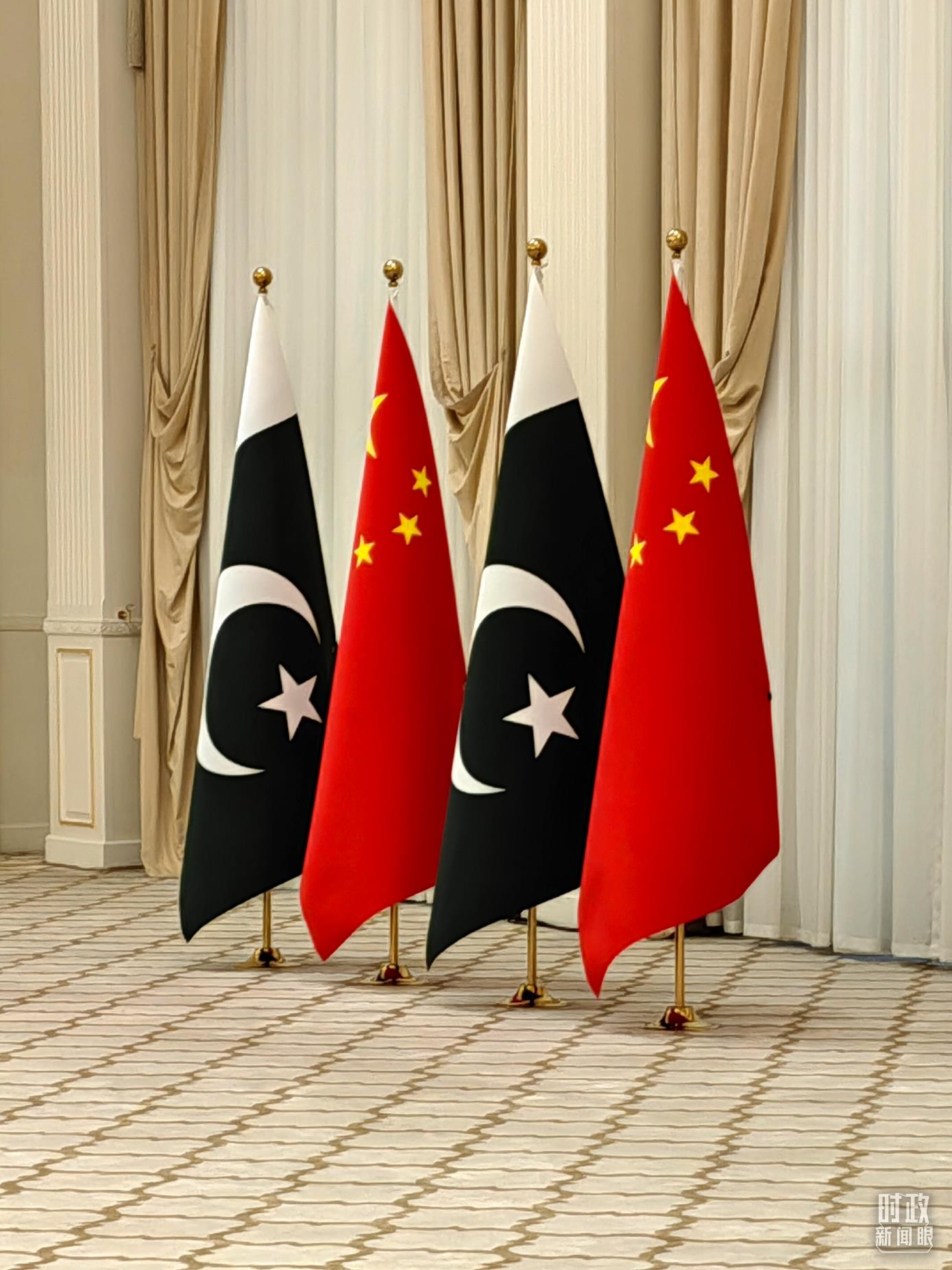 △中巴會見現(xiàn)場的兩國國旗。(總臺央視記者張曉鵬拍攝)