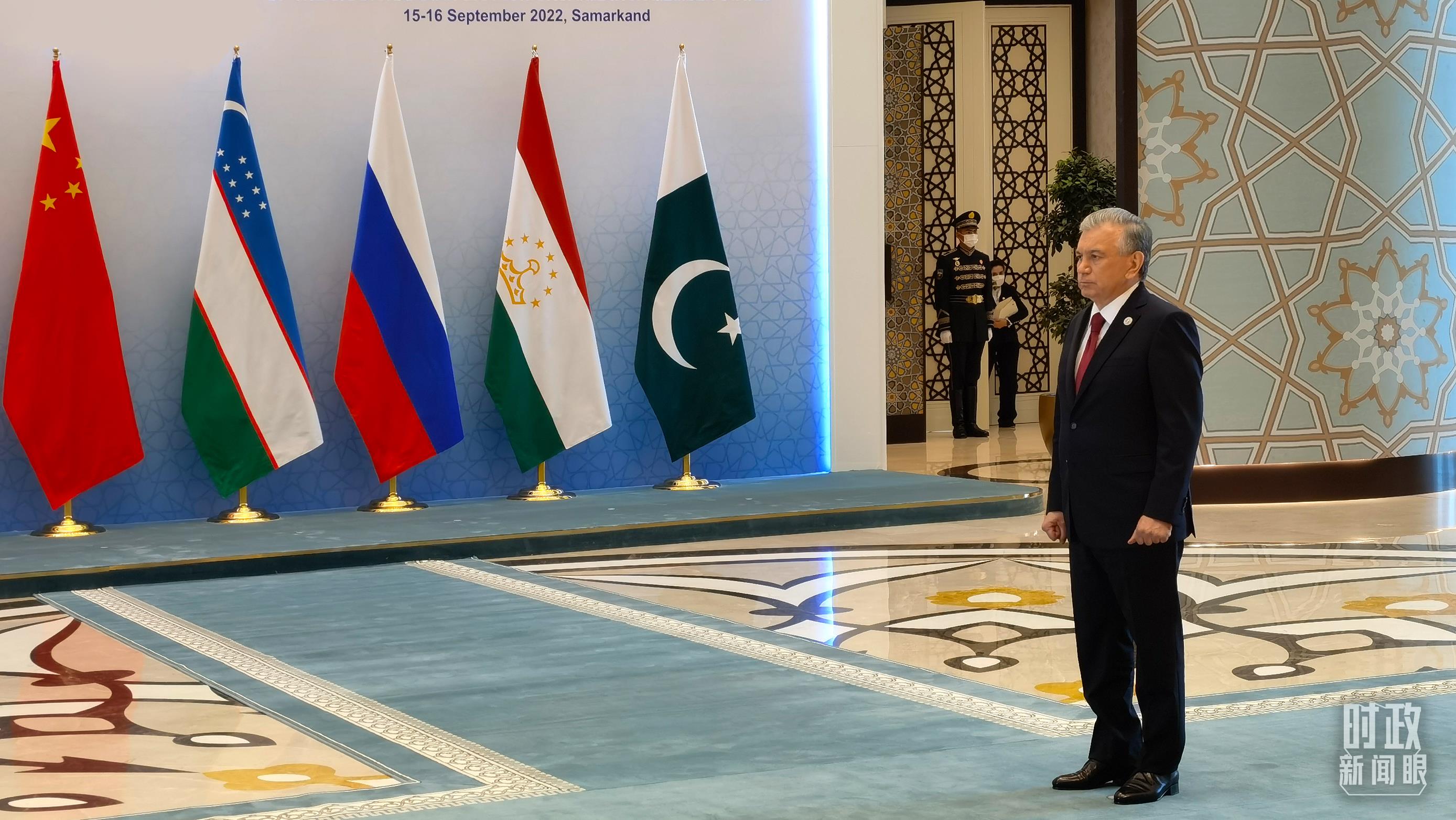 當(dāng)天上午,烏茲別克斯坦總統(tǒng)米爾濟(jì)約耶夫作為主席國元首提前來到現(xiàn)場,準(zhǔn)備迎接各國領(lǐng)導(dǎo)人的到來。