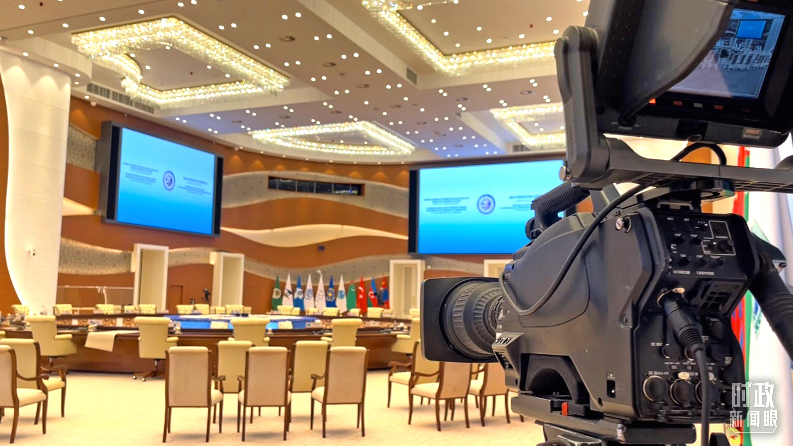 △米爾濟(jì)約耶夫總統(tǒng)正在等待上合組織其他成員國領(lǐng)導(dǎo)人到來。(總臺央視記者馬超拍攝)