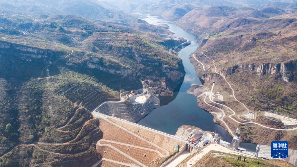 這是在位于烏蒙山區(qū)的貴州省納雍縣六沖河畔拍攝的夾巖水利樞紐工程(2022年3月17日攝,無(wú)人機(jī)照片)。新華社記者 陶亮 攝