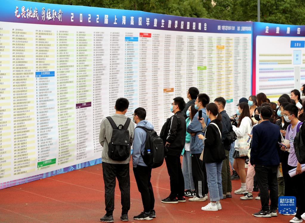 畢業(yè)生在2022屆上海高校畢業(yè)生秋季校園招聘會上了解崗位信息(2021年10月12日攝)。新華社記者 劉穎 攝