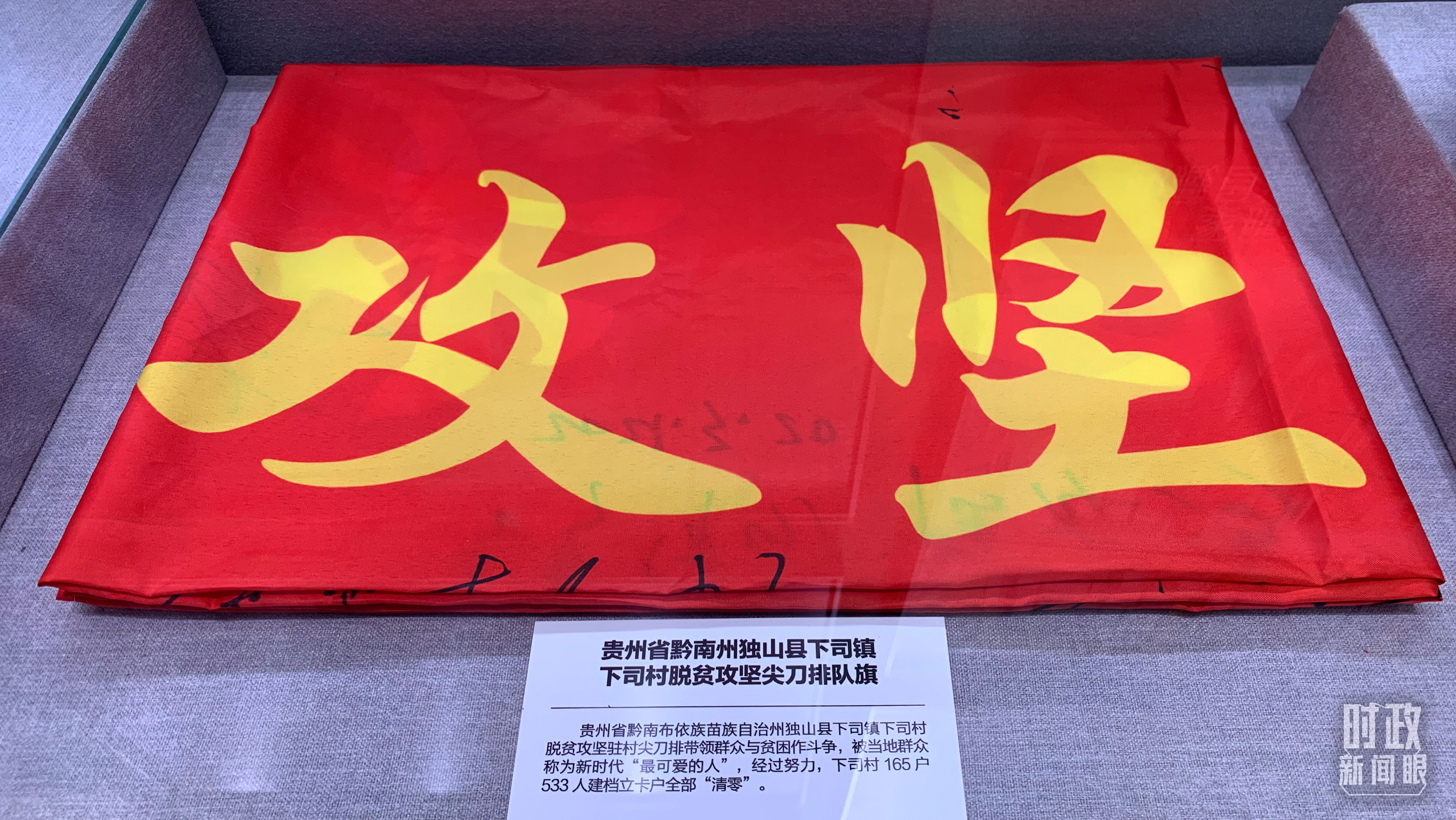 △ 貴州省獨(dú)山縣下司村脫貧攻堅(jiān)尖刀排隊(duì)旗。(總臺(tái)央視記者范一鳴拍攝)