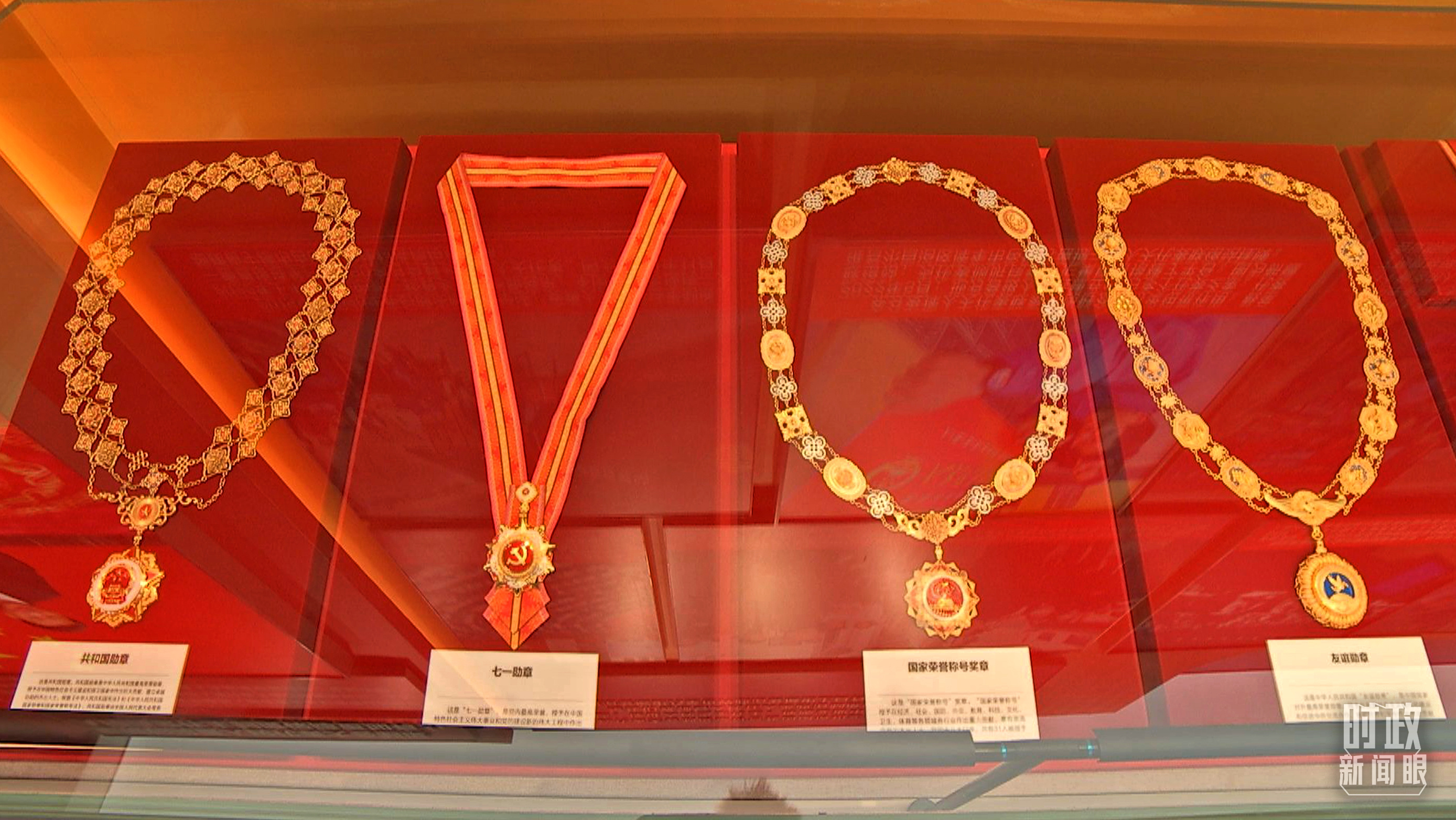 △ 從左至右依次是共和國(guó)勛章、七一勛章、國(guó)家榮譽(yù)稱號(hào)獎(jiǎng)?wù)?、友誼勛章。(總臺(tái)央視記者彭漢明拍攝)