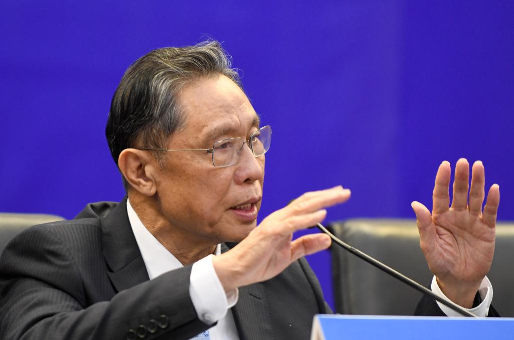 鐘南山出席廣州市疫情防控新聞通氣會(2020年3月18日攝)。新華社記者 盧漢欣 攝