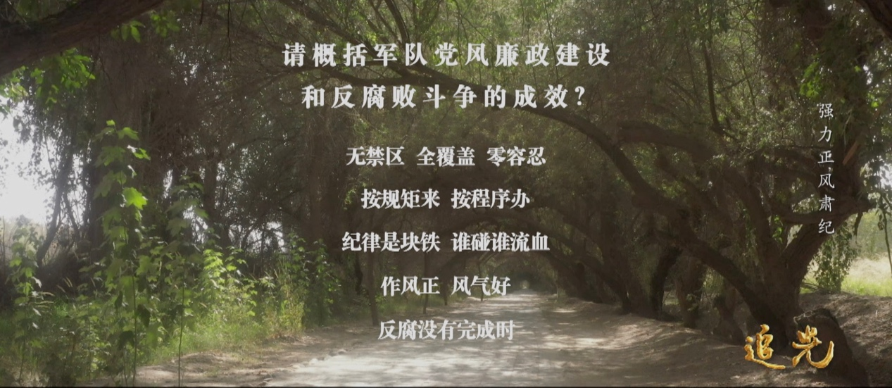 黨的十八大以來,習(xí)主席和中央軍委堅持有腐必反、有貪必肅,堅決查處郭伯雄、徐才厚、房峰輝、張陽等嚴重違紀違法案件并徹底肅清其流毒影響,積極構(gòu)建權(quán)力運行制約和監(jiān)督體系,大力糾治發(fā)生在官兵身邊的腐敗和不正之風(fēng),黨風(fēng)廉政建設(shè)和反腐敗斗爭取得歷史性成就。