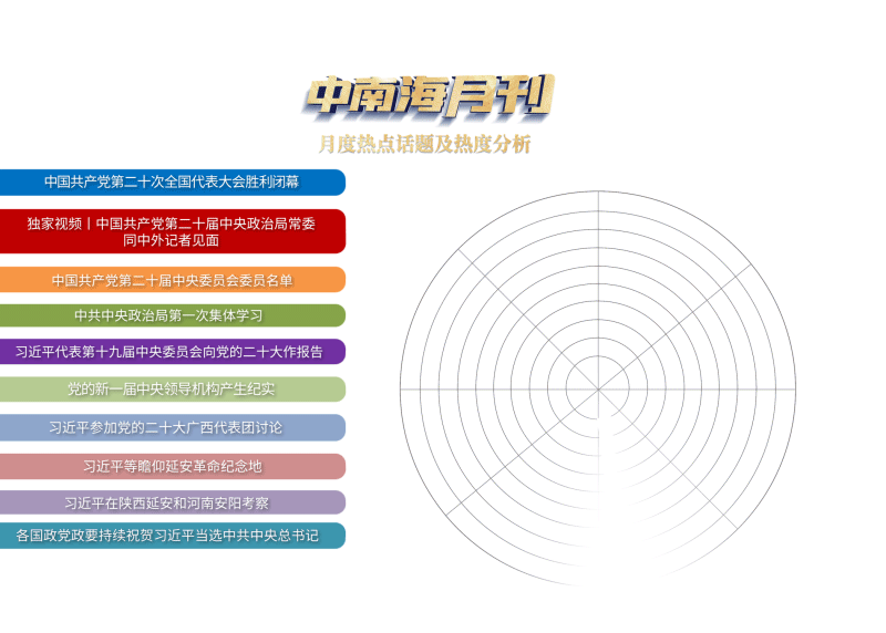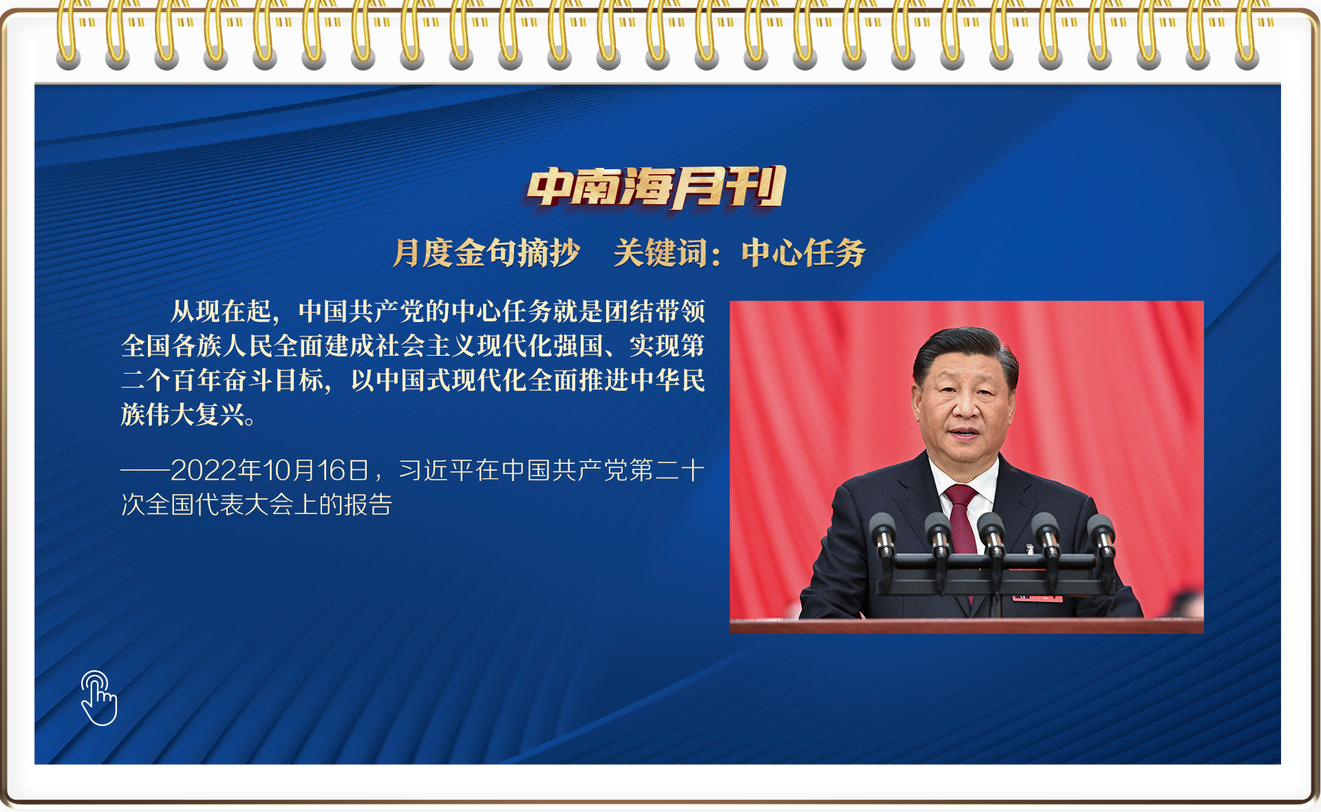代表第十九屆中央委員會(huì)向黨的二十大作報(bào)告、參加黨的二十大廣西代表團(tuán)討論、同中外記者見面、主持新一屆中央政治局第一次集體學(xué)習(xí)、帶領(lǐng)新一屆中央政治局常委赴陜西延安瞻仰延安革命紀(jì)念地、同黨的二十大后首位應(yīng)邀訪華的外國領(lǐng)導(dǎo)人——越共中央總書記阮富仲舉行會(huì)談……十月,習(xí)近平總書記的日程一如既往,緊湊又繁忙。