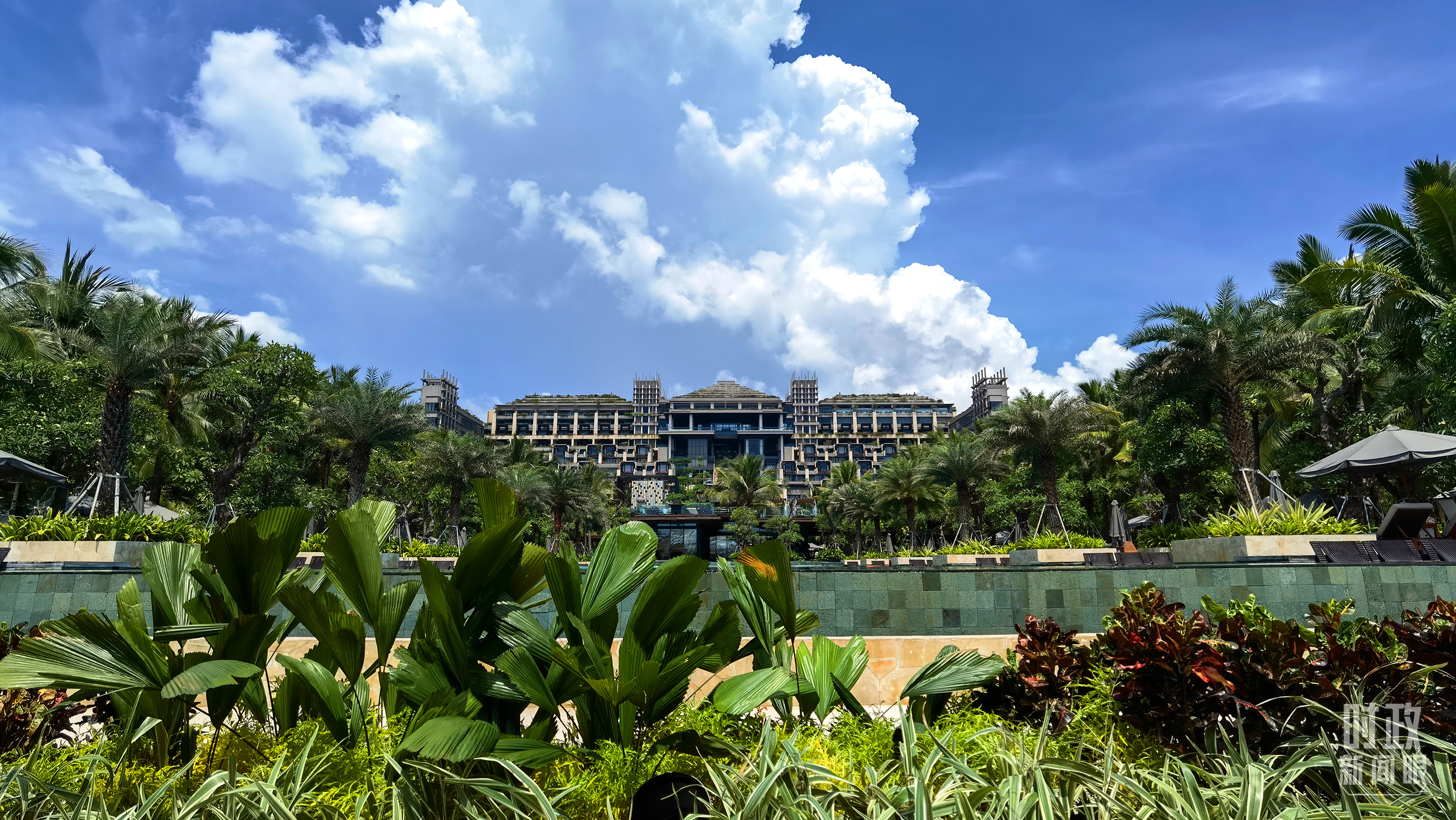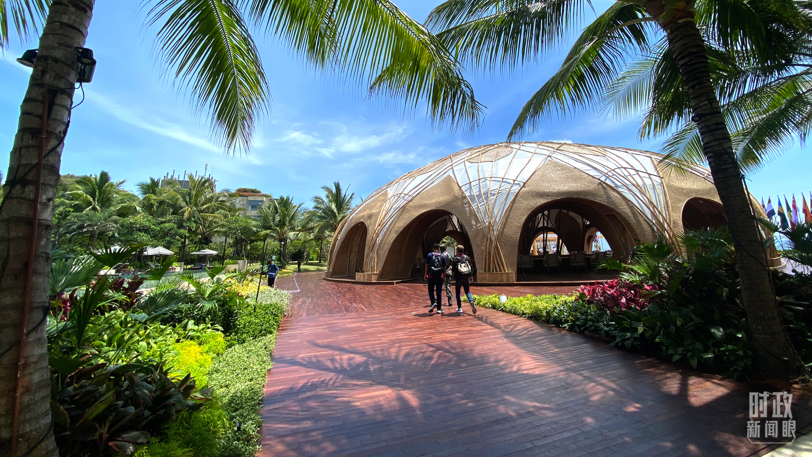 △從主會(huì)場(chǎng)眺望,巴厘島碧波萬(wàn)頃,風(fēng)光旖旎。(總臺(tái)央視記者韓銳拍攝)