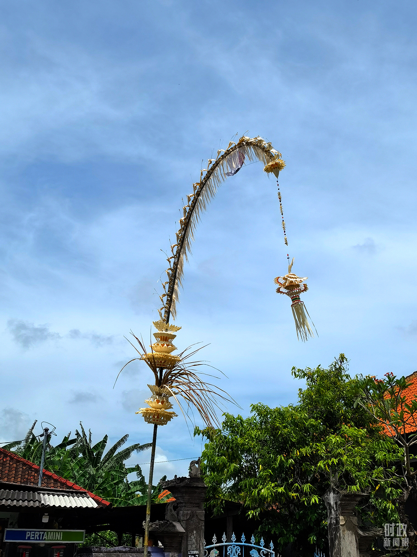 △每逢重大節(jié)日,巴厘島就會(huì)裝飾起蓬葭。它由椰子葉和鮮花制作而成,表達(dá)巴厘島人對(duì)萬(wàn)物之神的祝福和感激。(總臺(tái)央視記者韓銳拍攝)