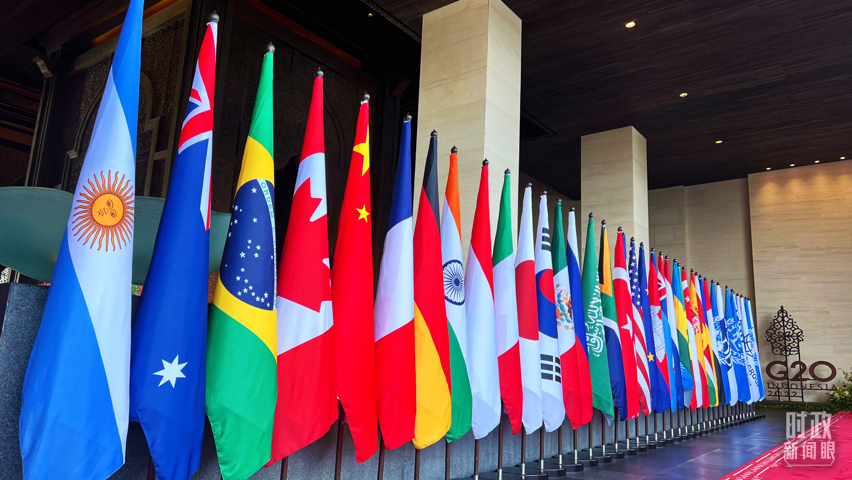 △巴厘島峰會(huì)迎接儀式現(xiàn)場(chǎng)的旗陣。(總臺(tái)央視記者程鋮拍攝)