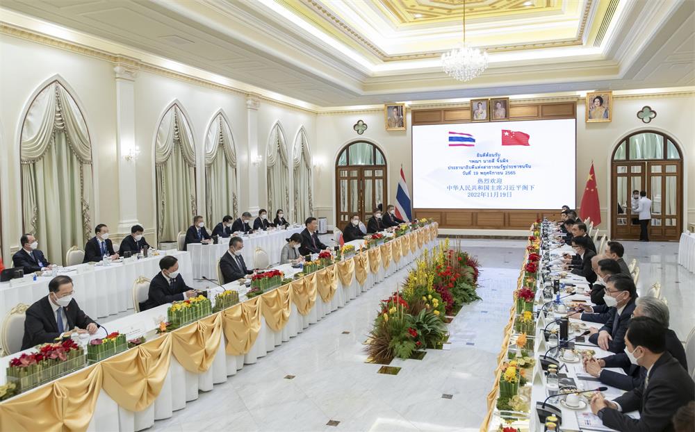 習(xí)近平指出,雙方要像走親戚一樣常來(lái)往、多走動(dòng),在涉及彼此核心利益和重大關(guān)切問(wèn)題上繼續(xù)相互堅(jiān)定支持。雙方要落實(shí)好未來(lái)5年《中泰戰(zhàn)略性合作共同行動(dòng)計(jì)劃》,統(tǒng)籌推動(dòng)各領(lǐng)域合作取得更多成果。要有效對(duì)接各自發(fā)展戰(zhàn)略,推動(dòng)高質(zhì)量共建“一帶一路”不斷取得新成效。雙方要加強(qiáng)投資、貿(mào)易、旅游、基礎(chǔ)設(shè)施、產(chǎn)業(yè)園等傳統(tǒng)領(lǐng)域合作,同時(shí)不斷培育新增長(zhǎng)點(diǎn),推動(dòng)數(shù)字經(jīng)濟(jì)、新能源汽車、科技創(chuàng)新等新領(lǐng)域合作取得積極進(jìn)展。要加快中老泰三方鐵路合作,積極推進(jìn)“中老泰聯(lián)通發(fā)展構(gòu)想”,重點(diǎn)加強(qiáng)基礎(chǔ)設(shè)施“硬聯(lián)通”,做好物流通關(guān)“軟聯(lián)通”,擴(kuò)大泰國(guó)優(yōu)質(zhì)農(nóng)副產(chǎn)品輸華。中方愿同包括泰國(guó)在內(nèi)的各方一道,高質(zhì)量實(shí)施《區(qū)域全面經(jīng)濟(jì)伙伴關(guān)系協(xié)定》,讓這一全球最大自貿(mào)區(qū)安排釋放更大紅利。加大打擊跨境犯罪,深化追逃追贓合作。加強(qiáng)教育、醫(yī)療、扶貧等民生領(lǐng)域合作,通過(guò)多種方式交流減貧發(fā)展經(jīng)驗(yàn),推動(dòng)兩國(guó)扶貧合作走深走實(shí),辦成、辦好一批貼近群眾、服務(wù)基層的實(shí)事。要加強(qiáng)青年交流,使兩國(guó)人民心更近、情更深,豐富中泰命運(yùn)共同體的人文內(nèi)涵。
