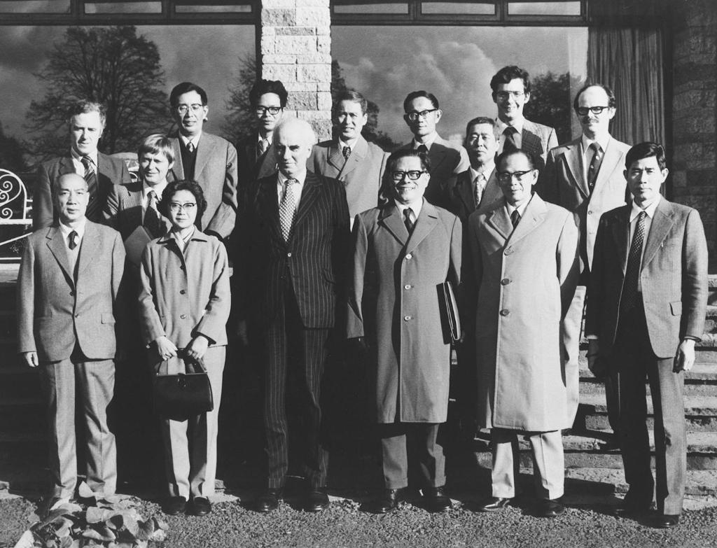 1964年6月,江澤民同志(二排右一)在法國艾克斯萊班出席國際電工委員會會議期間同與會代表合影。新華社發(fā)