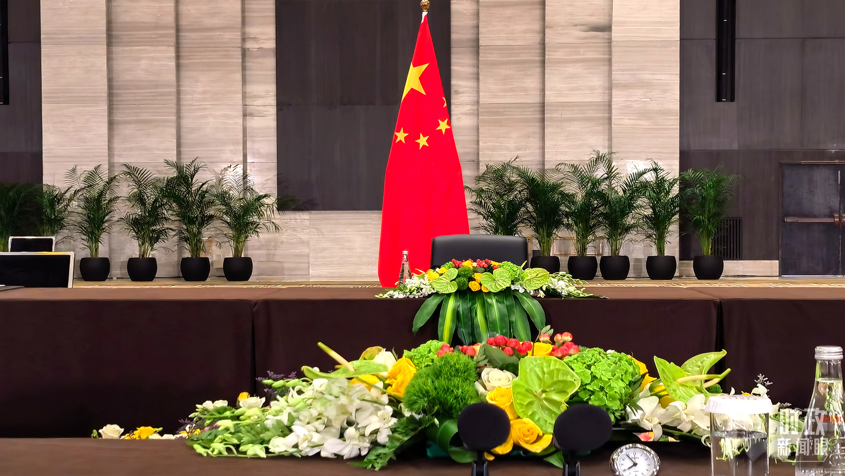 △會見現(xiàn)場的中國國旗。(總臺央視記者韓銳拍攝)