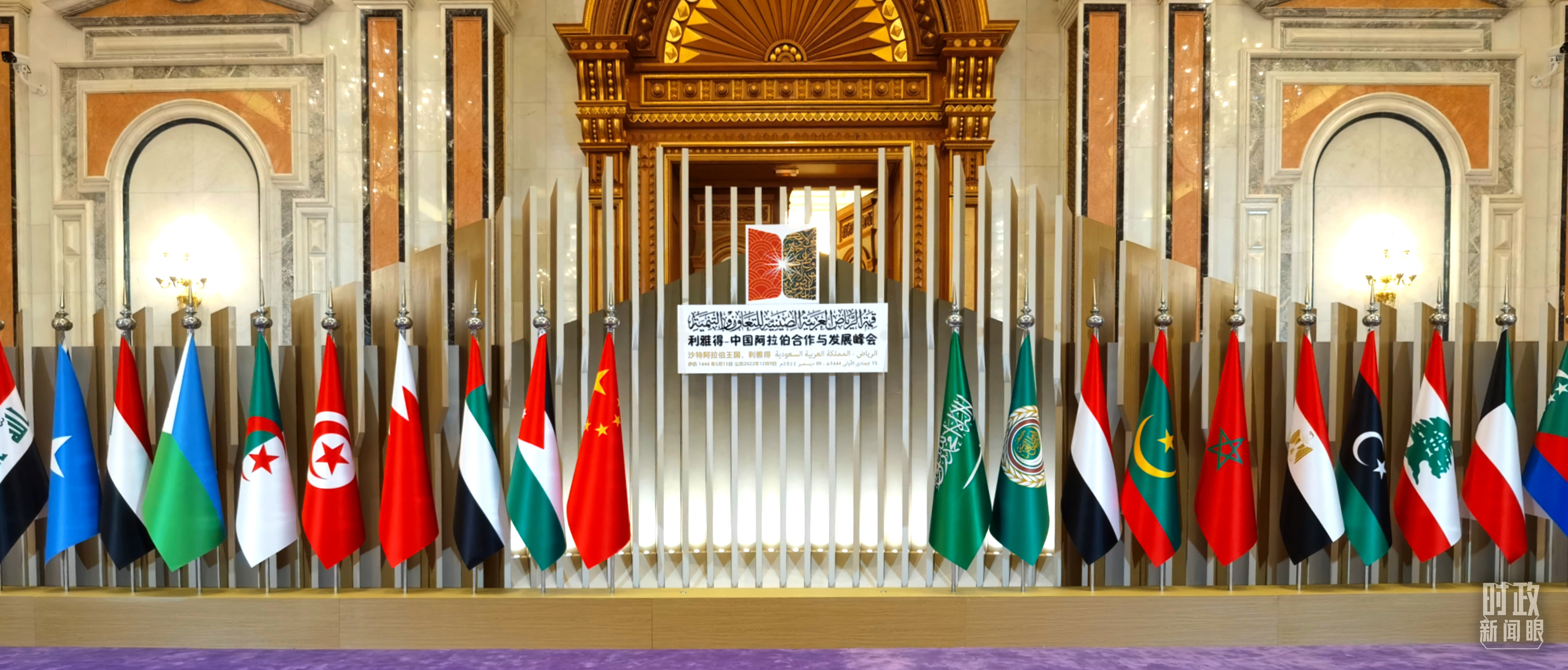 △中阿峰會現(xiàn)場的旗陣。(總臺央視記者馬超拍攝)