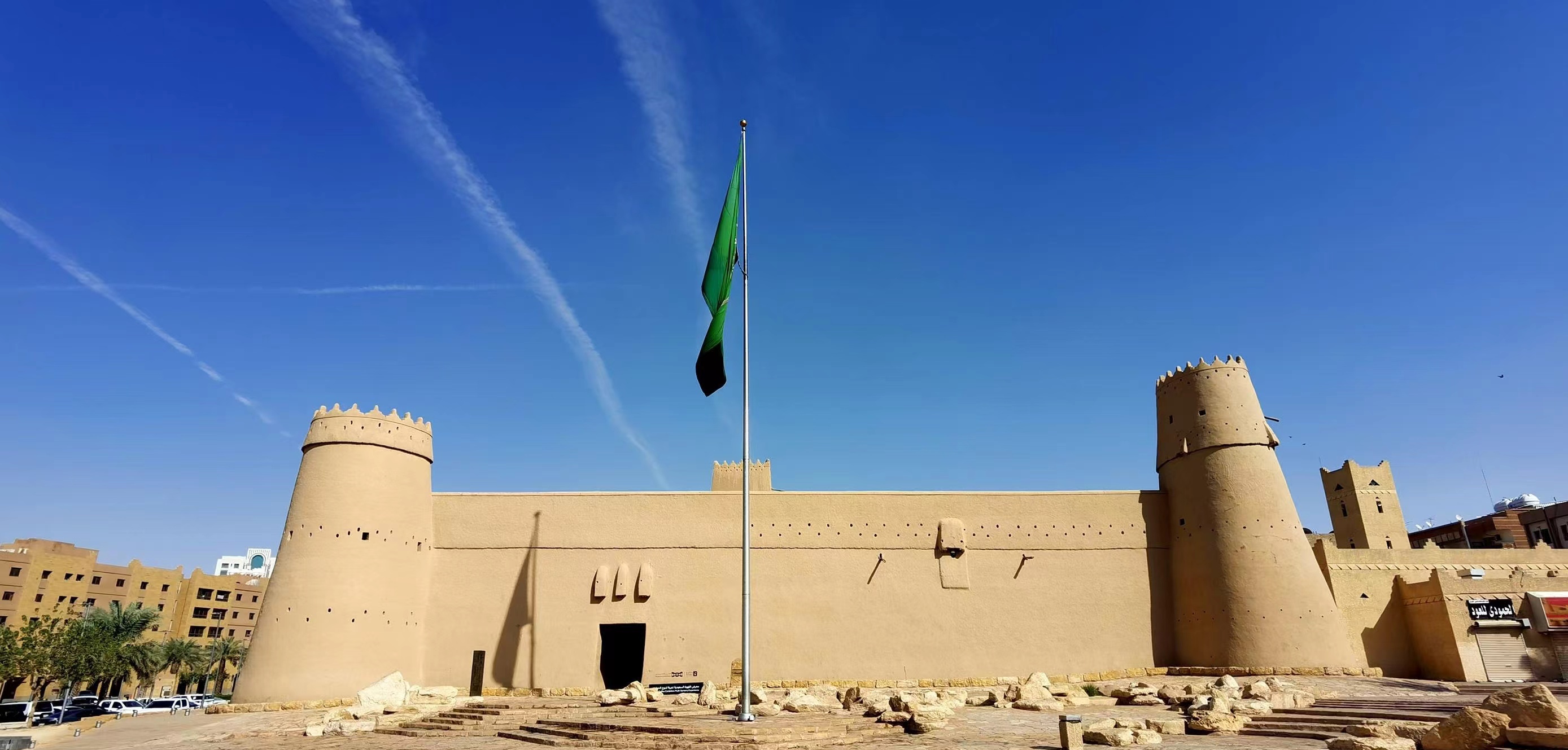 沙特首都利雅得,沙特國(guó)家博物館庭院內(nèi)綠樹(shù)成蔭。院內(nèi)西南角,一座白色的二層建筑靜靜矗立,因其外形方正而得名“四方宮”。