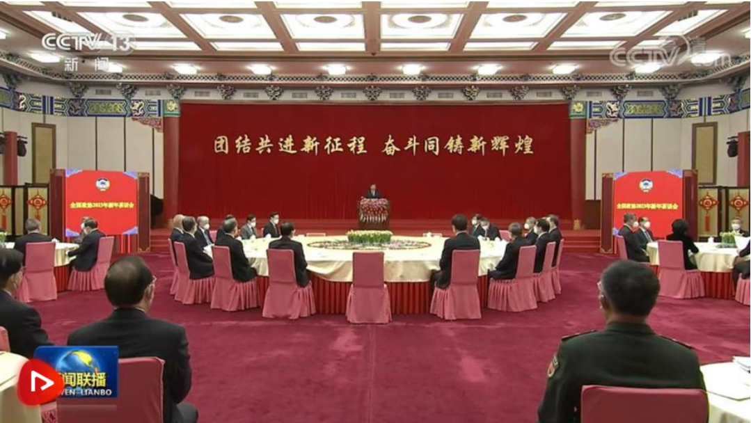 中國(guó)人民政治協(xié)商會(huì)議全國(guó)委員會(huì)12月30日上午在全國(guó)政協(xié)禮堂舉行新年茶話(huà)會(huì)。黨和國(guó)家領(lǐng)導(dǎo)人習(xí)近平、李克強(qiáng)、栗戰(zhàn)書(shū)、汪洋、李強(qiáng)、趙樂(lè)際、王滬寧、蔡奇、丁薛祥、李希、王岐山等同各民主黨派中央、全國(guó)工商聯(lián)負(fù)責(zé)人和無(wú)黨派人士代表、中央和國(guó)家機(jī)關(guān)有關(guān)方面負(fù)責(zé)人以及首都各族各界人士代表歡聚一堂,共迎2023年元旦。
