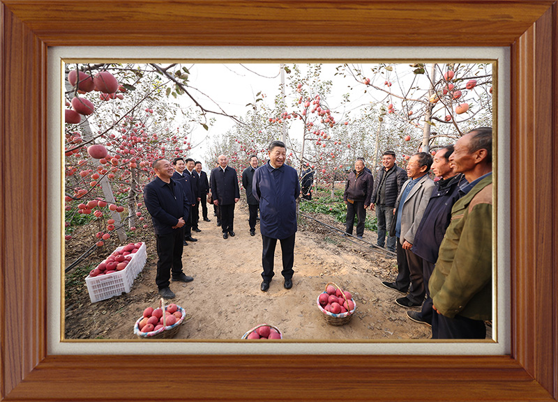 10月26日下午,習(xí)近平總書記在陜西省延安市安塞區(qū)高橋鎮(zhèn)南溝村蘋果園同老鄉(xiāng)們親切交流。