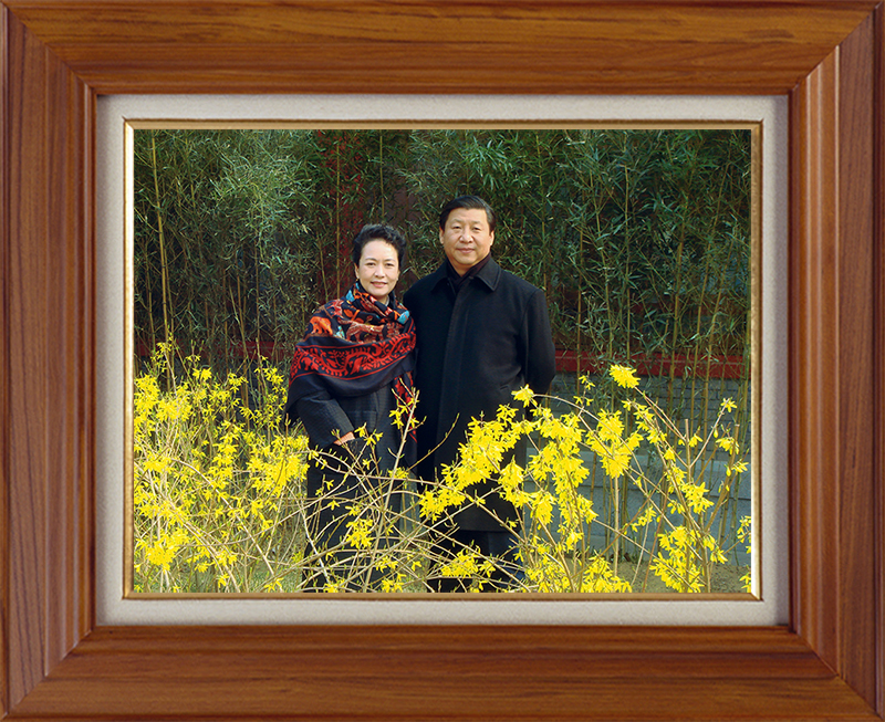 今年,書架上又增加了習(xí)近平總書記同夫人彭麗媛和女兒的合影。