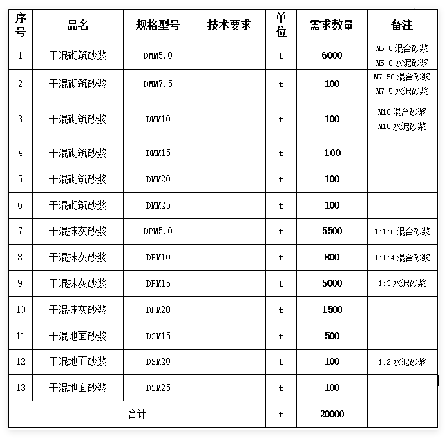 交貨期:要求所有砂漿供應(yīng)滿足生產(chǎn)需求。