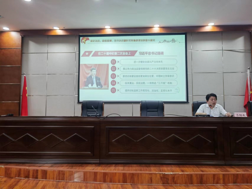 會(huì)議集中觀看了警示教育片《劍指頑疾 砸局破圈》、廉潔文化宣教片《深刻認(rèn)識(shí)“兩個(gè)永遠(yuǎn)在路上”的重大意義》和意識(shí)形態(tài)工作宣教片《堅(jiān)持馬克思主義在意識(shí)形態(tài)領(lǐng)域指導(dǎo)地位的根本制度》;視頻學(xué)習(xí)黨紀(jì)法規(guī)《中華人民共和國(guó)公職人員政務(wù)處分法》《中國(guó)共產(chǎn)黨廉潔自律準(zhǔn)則》和《中國(guó)共產(chǎn)黨紀(jì)律處分條例》;集中學(xué)習(xí)了習(xí)近平總書記關(guān)于全面從嚴(yán)治黨和加強(qiáng)紀(jì)檢監(jiān)察干部隊(duì)伍建設(shè)相關(guān)重要論述,傳達(dá)學(xué)習(xí)《城發(fā)建工集團(tuán)2023年黨建工作要點(diǎn)》《城發(fā)建工集團(tuán)2023年履行監(jiān)督責(zé)任工作要點(diǎn)》等文件精神,聽取了基層黨支部2023年黨建、全面從嚴(yán)治黨、意識(shí)形態(tài)工作總結(jié)及下半年工作計(jì)劃。